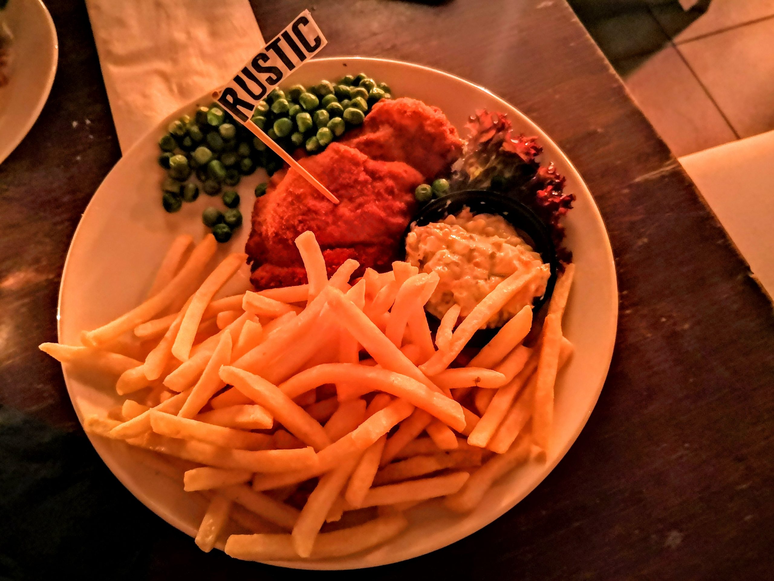 The drink menu also has something for everybody. What I like about Rustic that they have both, Carakale and Petra Beer on Tab. So whether you crave a blond or pale ale from Carakale or a Weizen or Amber from Petra Beer, you will find it. Of course, they serve all kind of cocktails, whiskey, and spirits as well. Their happy hour is daily from the opening time at 3PM until 7PM with 50% on drinks and 30% on food.