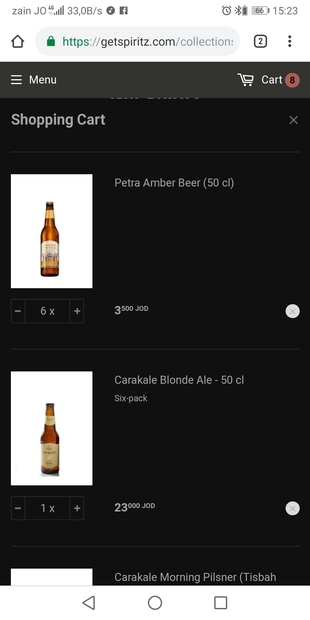 There is a huge selection of alcoholic drinks that can be delivered. In the beer section, you will find all local beers such as Amstel, Carakale, or Petra Beer. Additionally there is a range of import beers such as Almaza, Heineken, Guinness, or Leffe. Regarding wines, you will find JR Wines, Saint George Wine, and other imported wines. The spirit section seems endless. You can browse all drinks and look at the picture, their description, and reviews. When finalizing your selection, you can decide for payment options and define the address. Pinning the location did not work directly but Get Spiritz will contact you and makes sure you are happy with your alcohol delivery in Amman.