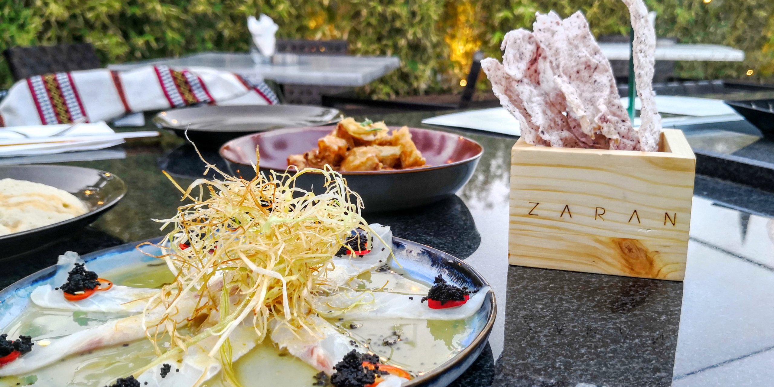 Before I get into the food, I should highlight that Zaran Rooftop is rather a place for drinks or just to chill and enjoy the view than for really hungry nights. However, they offer a really interesting variety of Japanese dishes, some of them I never tried before, or at least not that way. We started with Assorted Mezze, some rice crackers which tasted a bit like these Asian shrimp crackers, but less fishy and much better. They were light and we dipped them into the creamy, foamy Hummus. This came together with the Eggplant Miso. All together, this was a nice sensory introduction and a great combination of Japanese and Levantine cuisine. Also we had Ceviche, which is Seabass seasoned with Lemon Juice Chili and Caviar. It was topped with caramelized green onion, I believe. I enjoyed the great combination of sour and spicy while the sweet flavored green onion gave it something special. Definitely, something new for me and a great alternative to normal sushi or alike.
