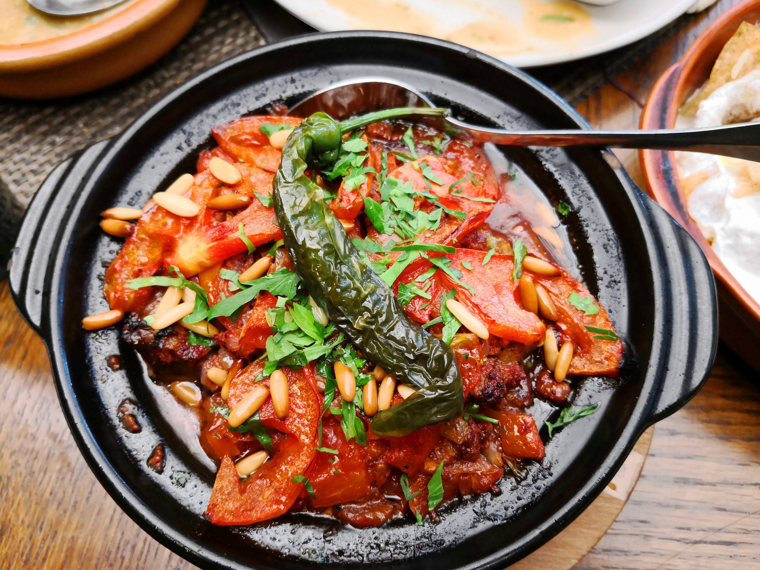 Tal Alrumman is a special place in many aspects. It has awesome furniture, it is super huge, they offer an amazing view, you can take your kids swimming there in Summer, they have small souvenir shop onsite AND they have incredible food. The sheer range of dishes is already impressive but the taste and how they present it is even better. Be it Pomegranate flavored Hummus, clay pot dishes as in the picture, their grilled meat or Babaghanoush served in a pineapple boat. It is probably my favorite Arabic restaurant and a Must-try for any visitor to Jordan.